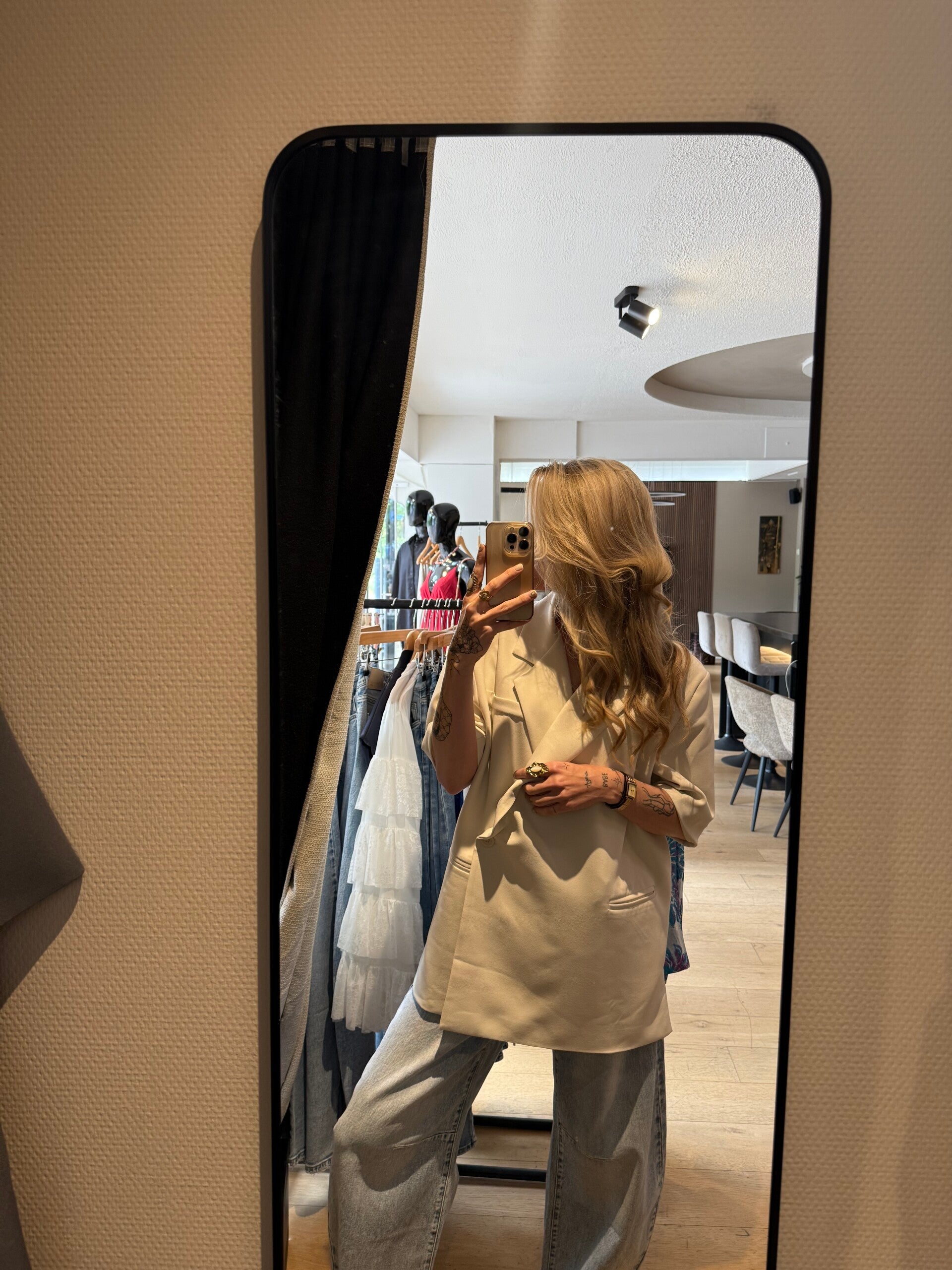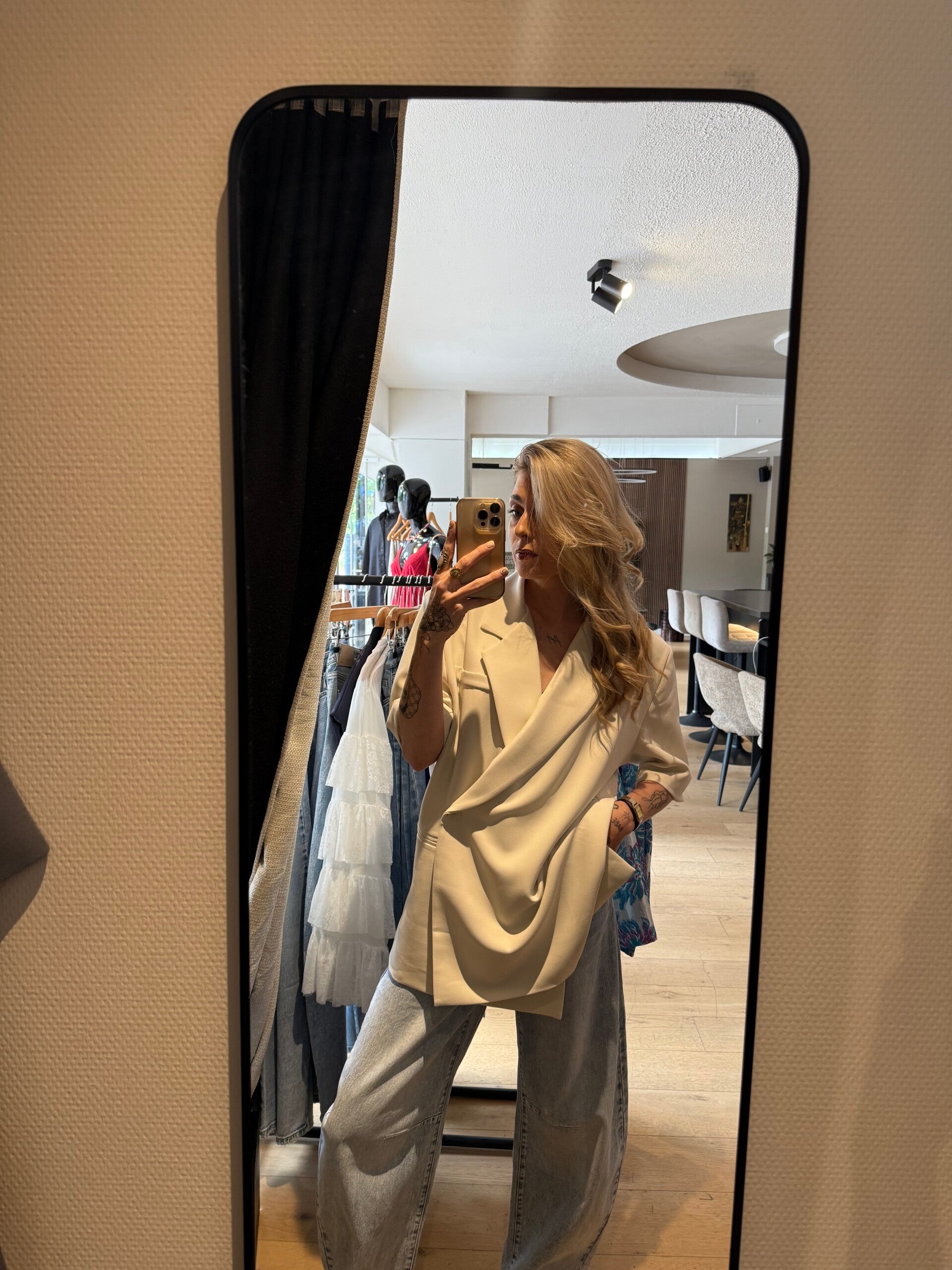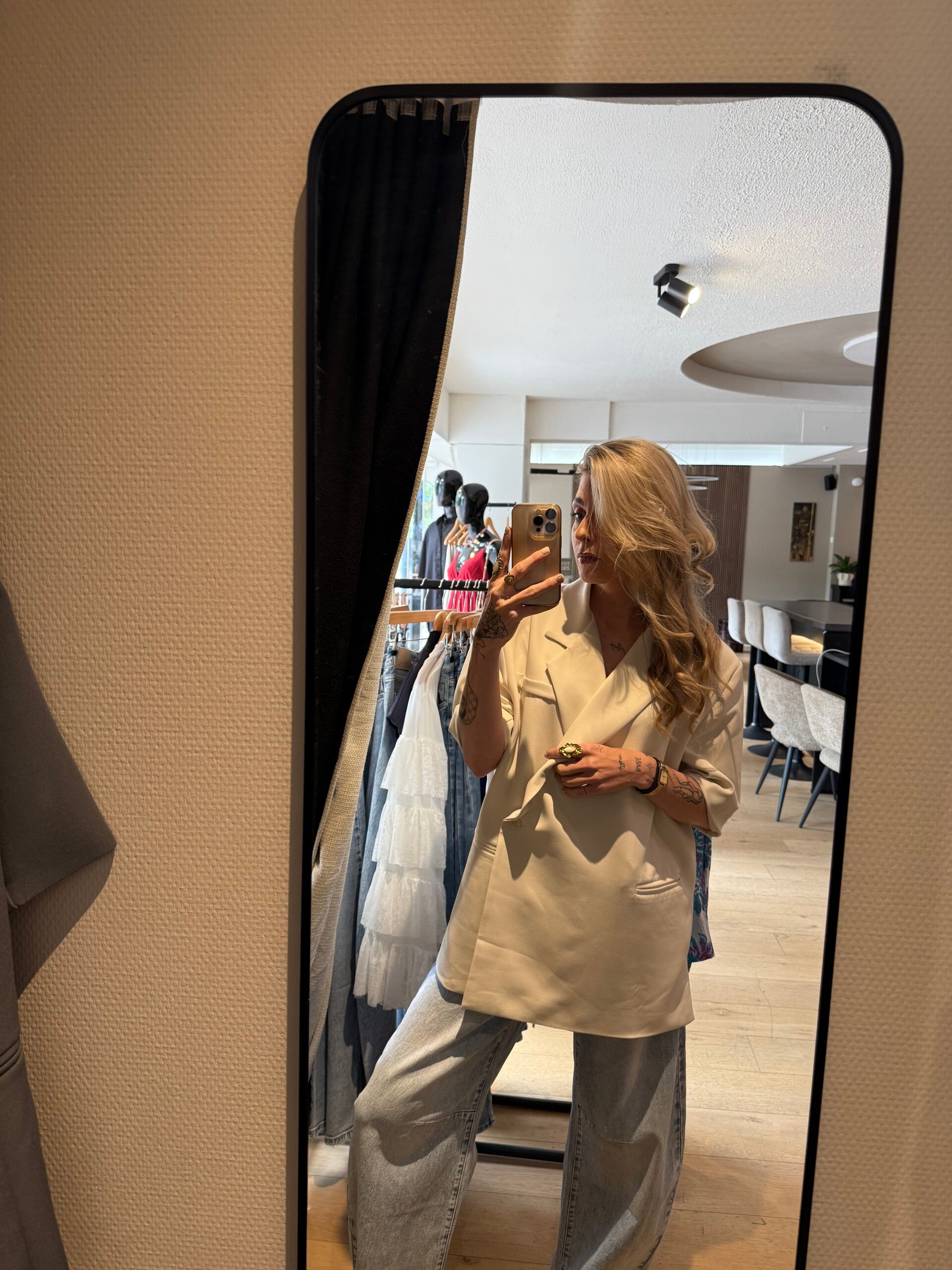 De Bibi Blazer is een korte, oversized blazer met een relaxte en stijlvolle uitstraling. Dankzij de losse fit en korte mouwen is dit item perfect voor zowel casual als chique looks.