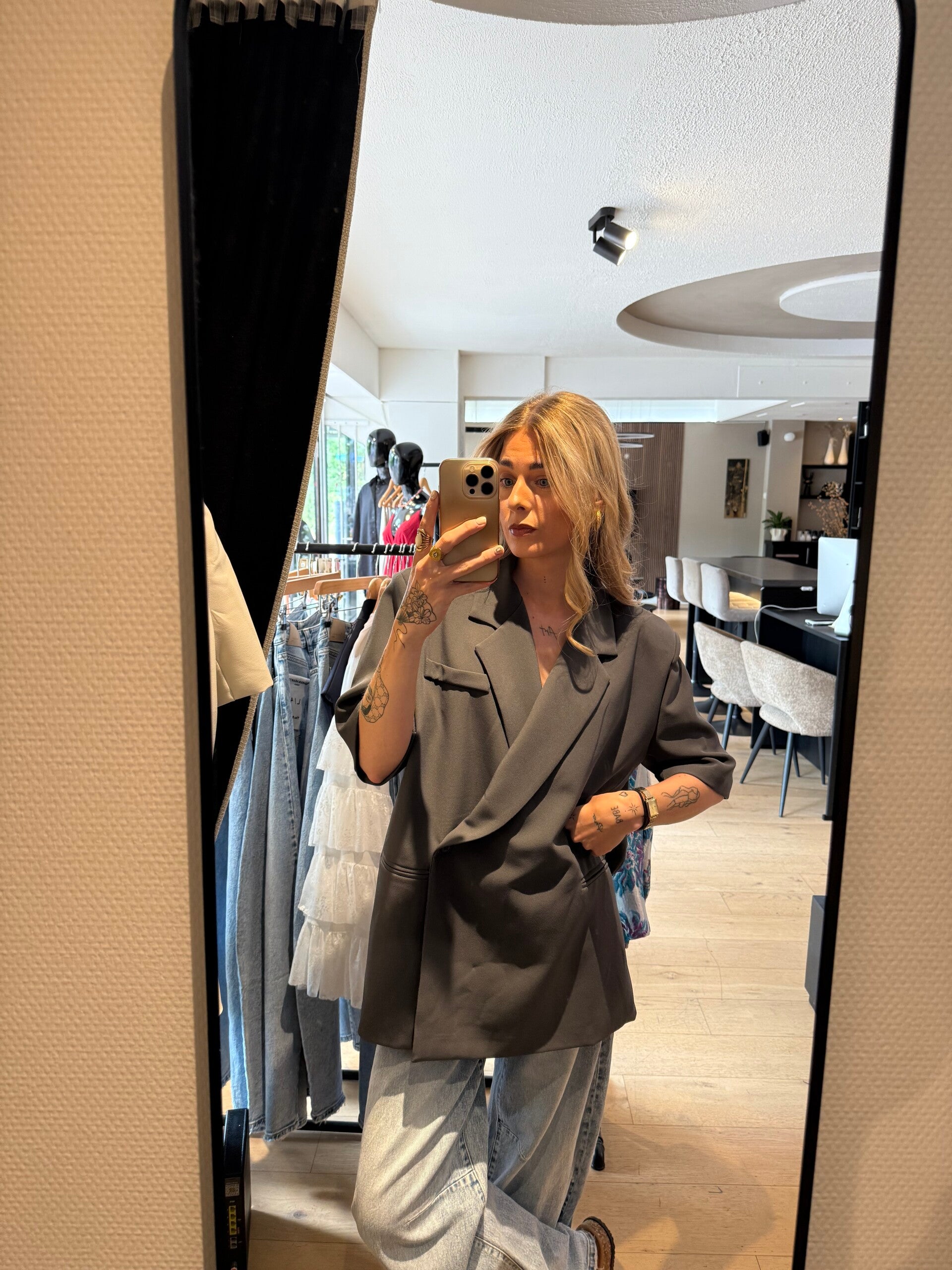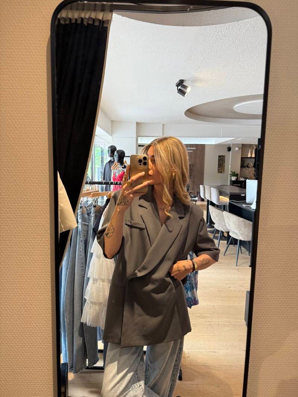 De Bibi Blazer is een korte, oversized blazer met een relaxte en stijlvolle uitstraling. Dankzij de losse fit en korte mouwen is dit item perfect voor zowel casual als chique looks.