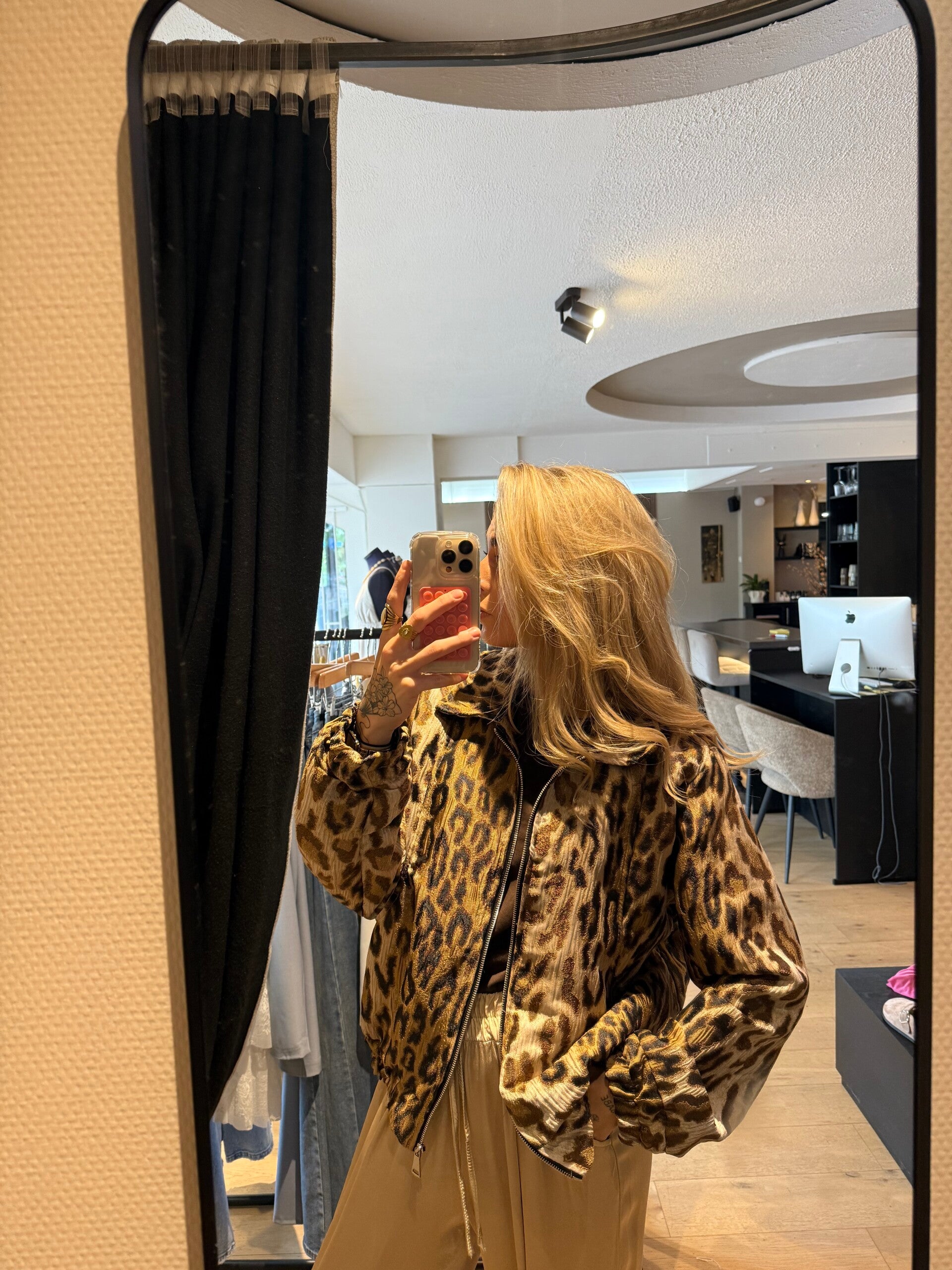Ga voor een gedurfde, stijlvolle look met onze Leo Jacket. Deze opvallende jas met luipaardprint is gemaakt van een zachte, hoogwaardige mix van 95% polyester en 5% elastaan, wat zorgt voor een comfortabele pasvorm met een lichte stretch. Dankzij het one size ontwerp past hij bij verschillende lichaamstypes.